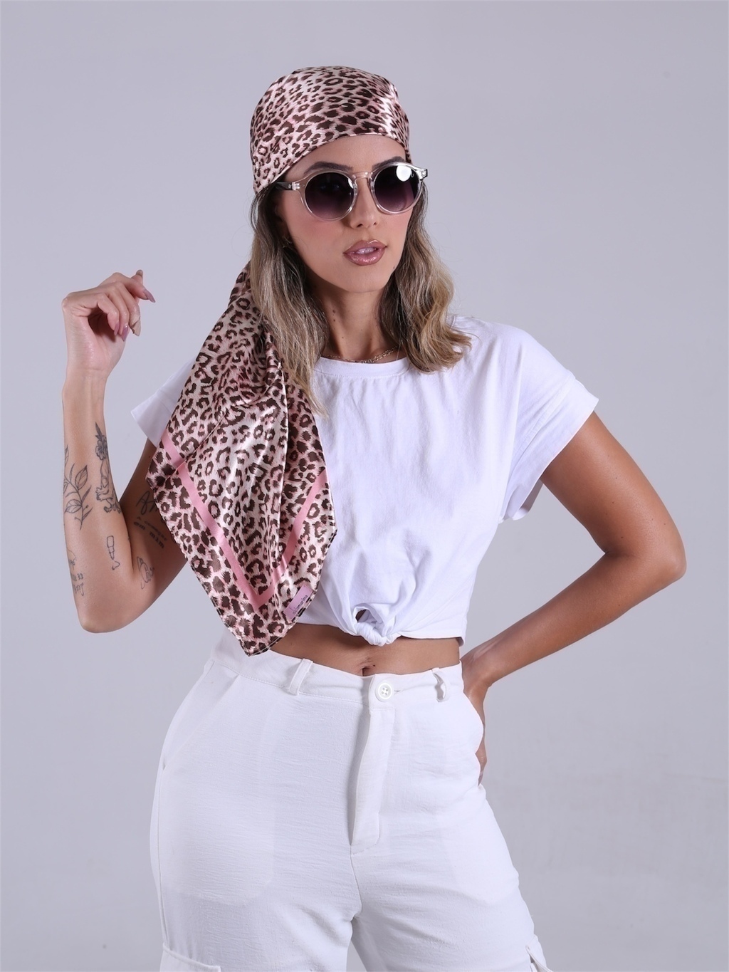 Transforme seu estilo com o Lenço de cetim com estampa onça e sinta a diferença que um acessório de qualidade pode fazer na sua aparência. Garanta já o seu e arrase em qualquer ocasião!